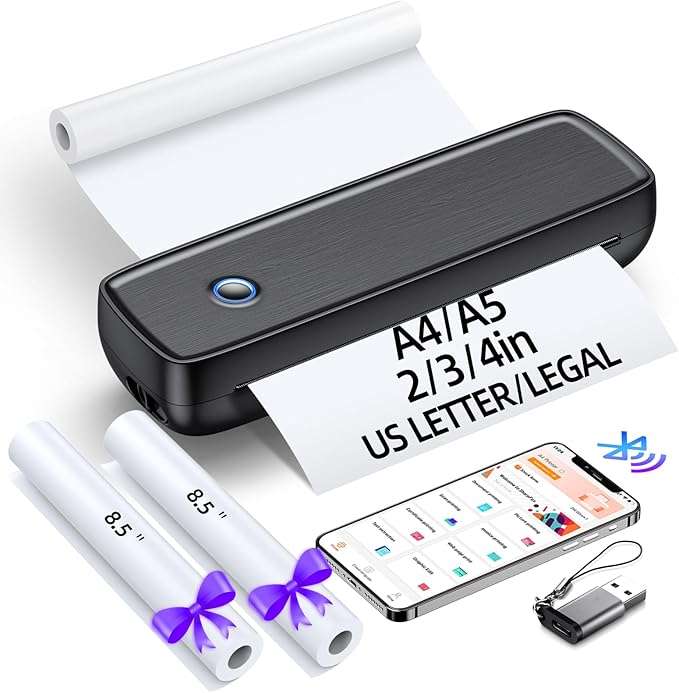Supports 8.5×11 thermal paper for versatile document printing on-the-go.